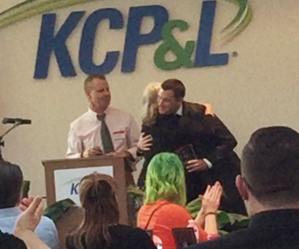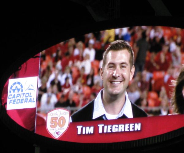 Tim Tiegreen was thanked for his leadership in philanthropy at Arrowhead Stadium during a Kansas City Chiefs football game. Also receiving recognition was the Hall Family Foundation and the Sprint Community Foundation.